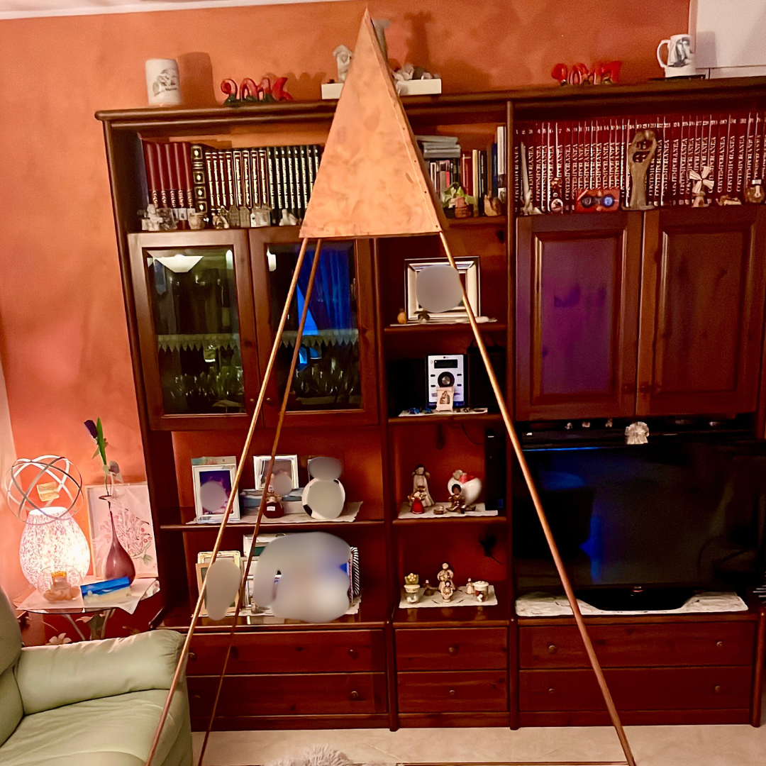 Questa piramide è completamente in rame e progettata per essere smontabile e appunto trasportabile, così da poterla posizionare facilmente in casa, in giardino o portarla con sé per sessioni di meditazione e momenti di ricarica energetica.